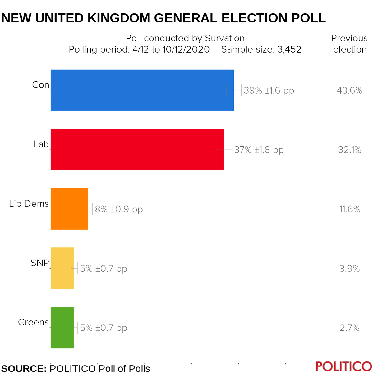 Politico poll of polls british polls trends and election news for the united kingdom. The conservative party which won a majority at the 2019 general election included pledges in its manifesto to remove the fifteen year limit on voting for british citizens living abroad and to introduce a voter identification requirement in great britain. Prior to the 2019 united kingdom general election various organisations carried out opinion polling to gauge voting intentions.