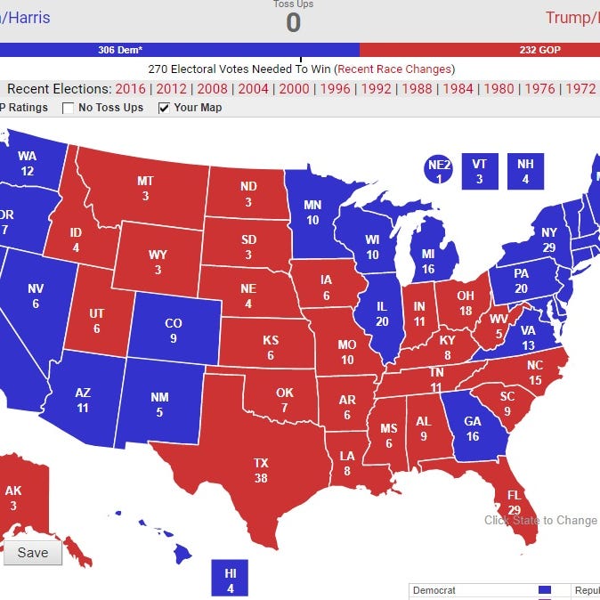 Use this map as a starting point to create and share your own 2016 presidential election forecast.