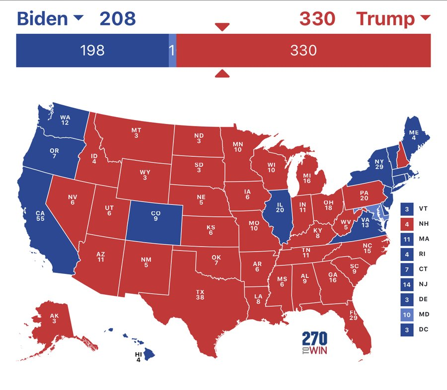 The political illuminati can rail all they want about the president losing states he won last time. Article continues after ads the latest polls more could come following the date this is published from trafalgar show trump losing two states he won in 2016. This map puts trump on the road to victory 281 electors to biden s 227.